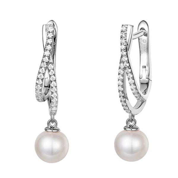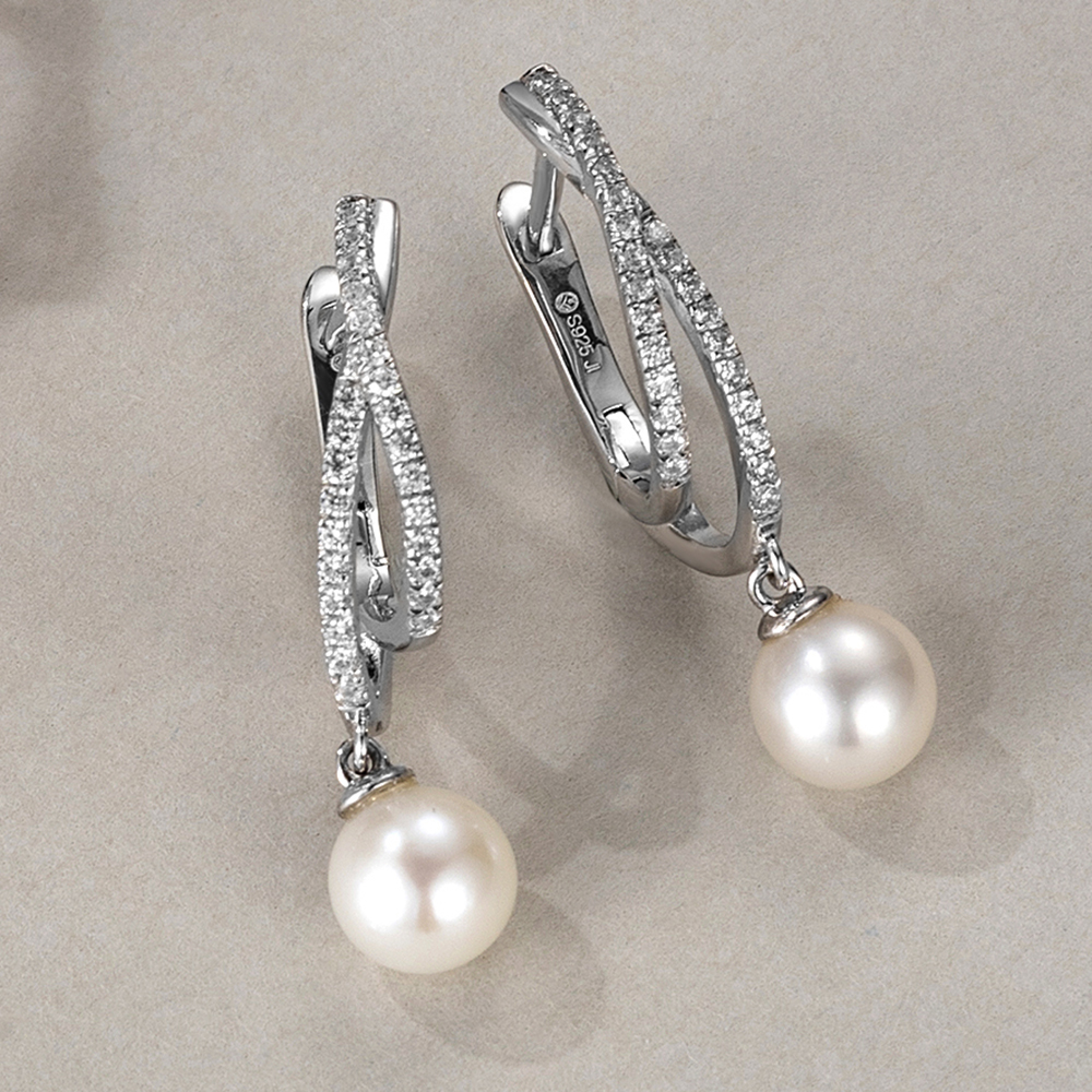 925-P-E001 925 Silver Diamond Pearl Earrings