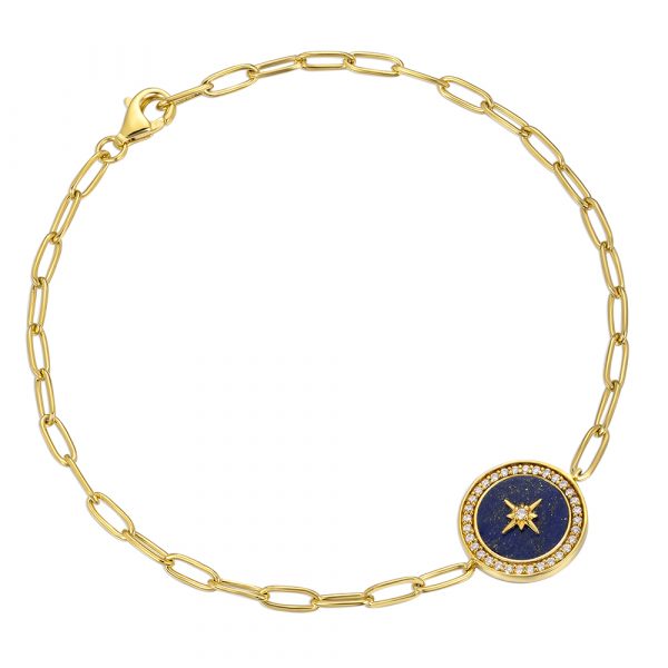 VG-SN-BL006-L 925 Silver Lapis Diamond Bracelet